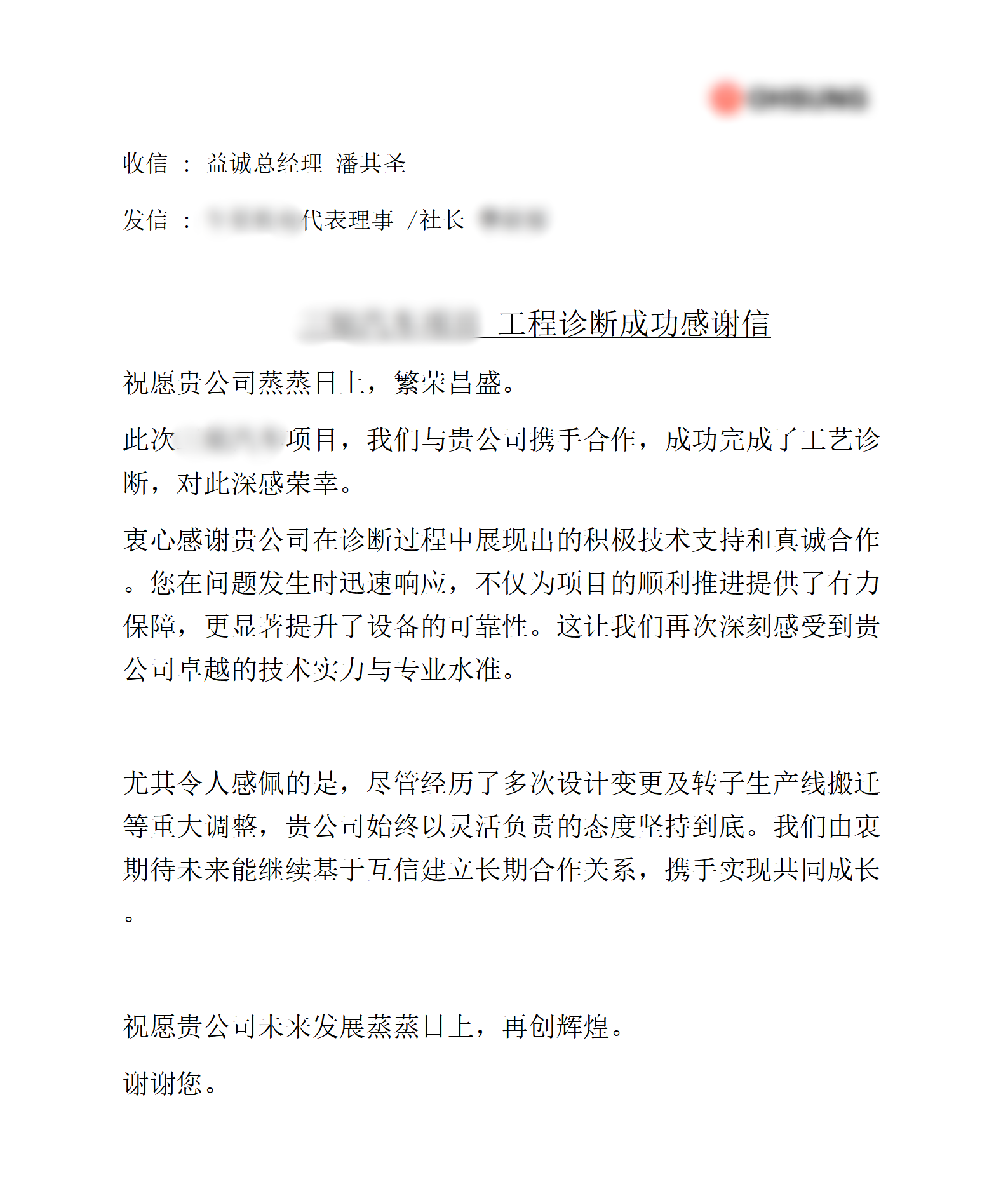 客戶的每一次認(rèn)可,都是我們持續(xù)創(chuàng)新的動(dòng)力。益誠將繼續(xù)深耕自動(dòng)化與工藝優(yōu)化,致力于通過可靠的解決方案與優(yōu)質(zhì)的交付服務(wù),在客戶邁向智能制造的轉(zhuǎn)型旅程中,成為值得信賴的合作伙伴。